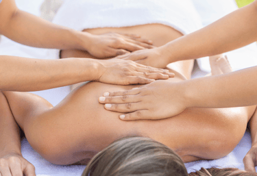 Two therapists work in synchronized motion to deliver an intensely relaxing and luxurious massage experience.