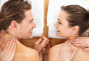 Two people enjoy massages at the same time in a shared, relaxing room — perfect for partners or friends.