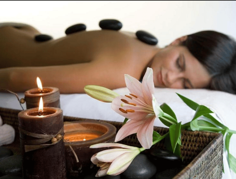 Heated stones are placed on key points and used in massage strokes to deeply relax muscles.